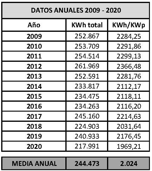 Producción energética anual 2009 – 2020 y media Por Xavier|2023-04-28T19:03:26+01:0028 abril 2023 | Sobre el Autor: Xavier